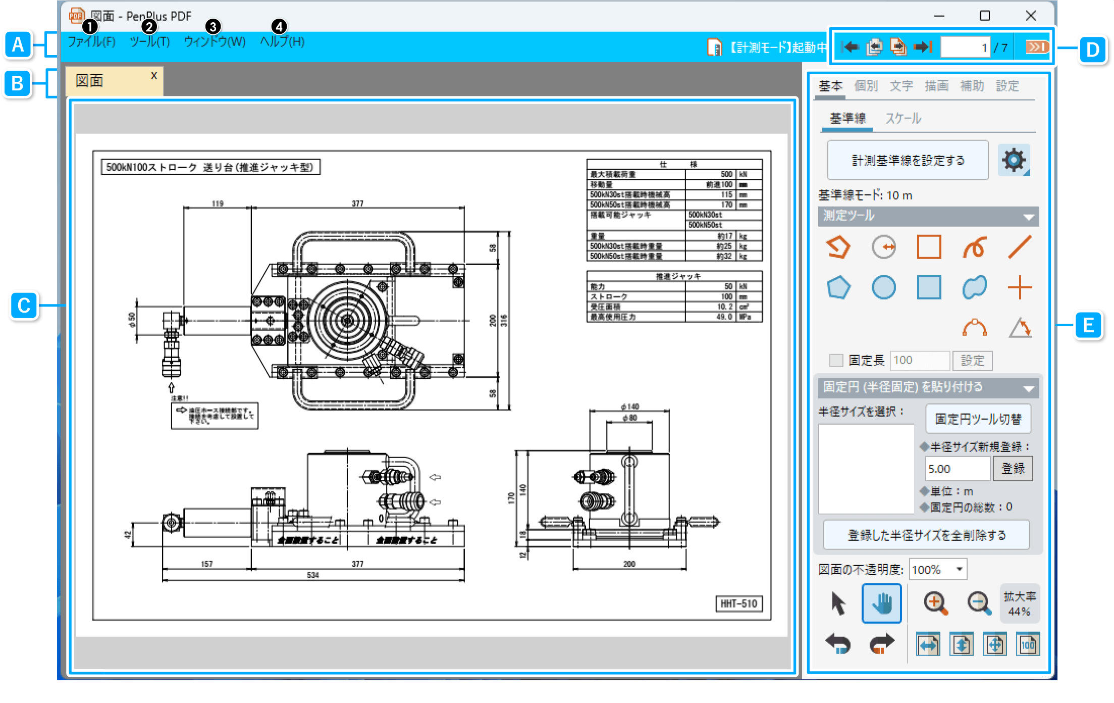 現在選択中のPDFファイル、もしくは計測ファイルの内容が表示されます