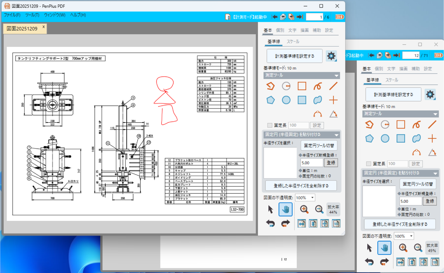 既存のPDFファイルを選択し、計測モードへ読み込みます。