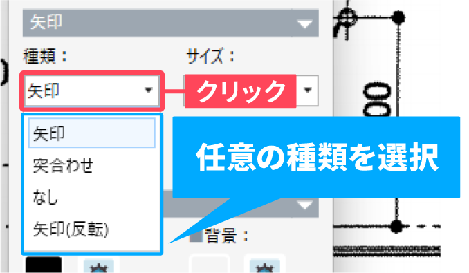 矢印の種類は以下から選択できます。任意の種類を選択してください。