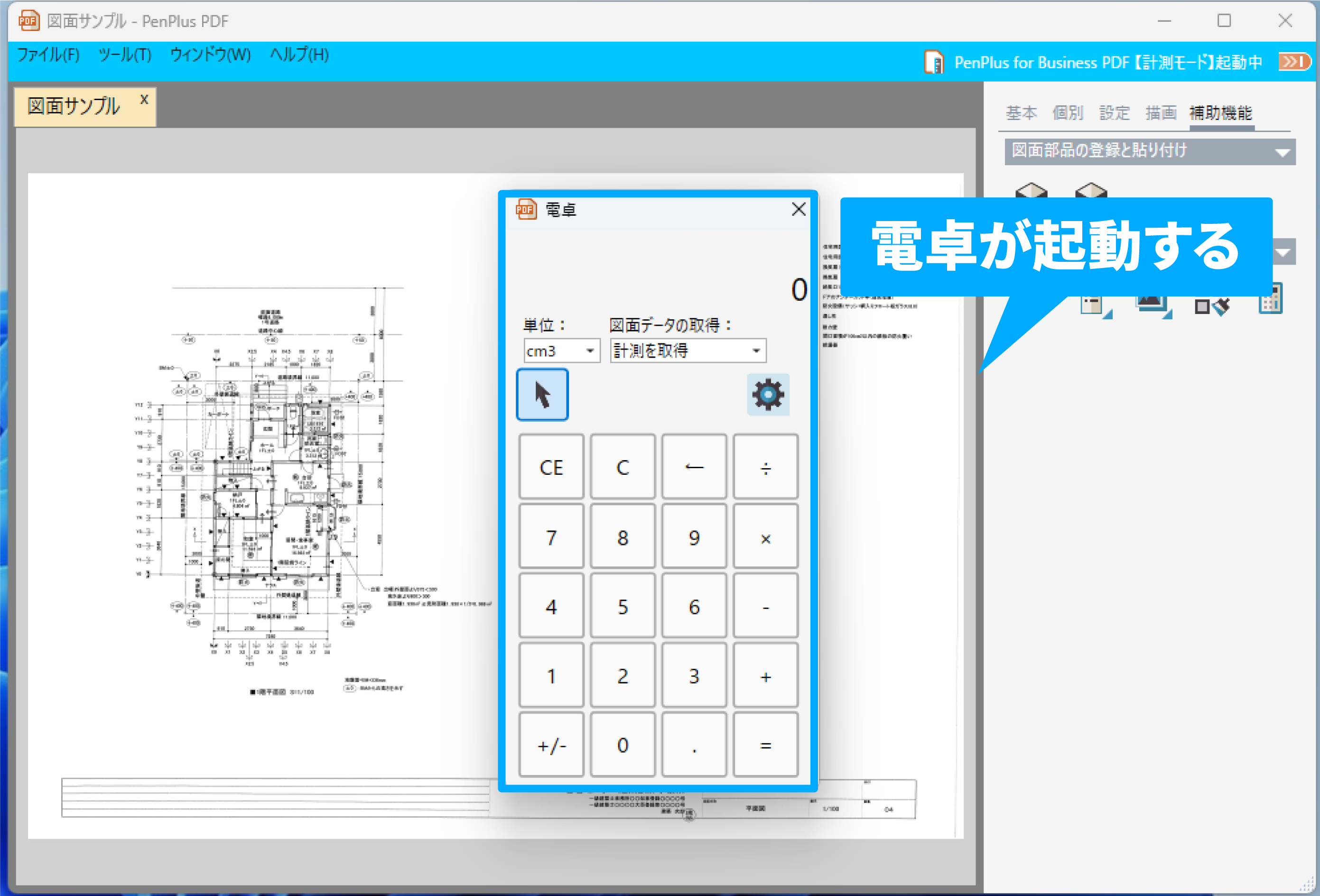 計測結果の数字を取得し、簡単に計算ができる機能です。