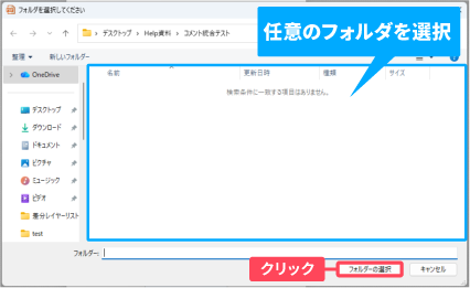 任意のフォルダを選択して「フォルダーの選択」をクリックします。