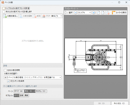 PDFに含まれるページのトリミングや回転・分割を、詳細設定画面で一括操作できます。