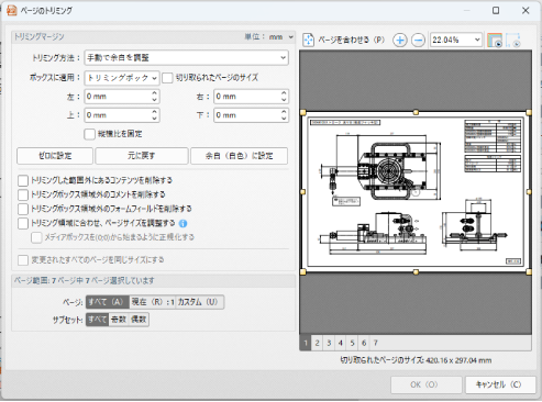 何度も編集が必要なPDFの場合「トリミング範囲外のデータを削除する項目」にはチェックを入れず、トリミング再設定可能な状態にしておくことをおすすめします。