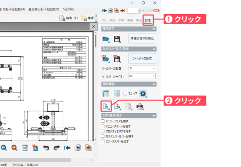 ツールパネル⑥「設定」を開き、補助機能から「ページをトリミング」をクリックします。