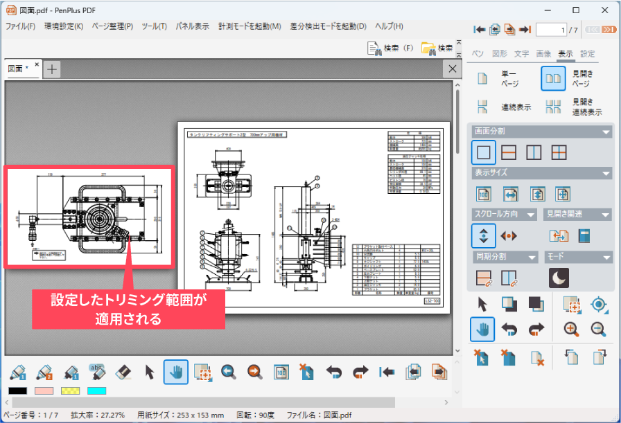 指定したトリミングの適用ページに、今回のトリミング内容が適用されます。