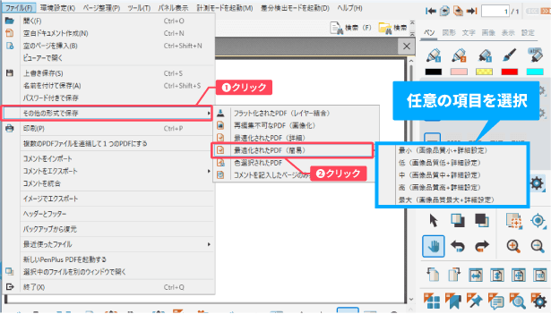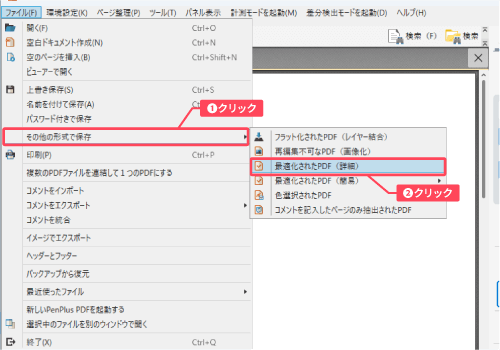 表示された一覧から「最適化されたPDF」をクリックしてください。