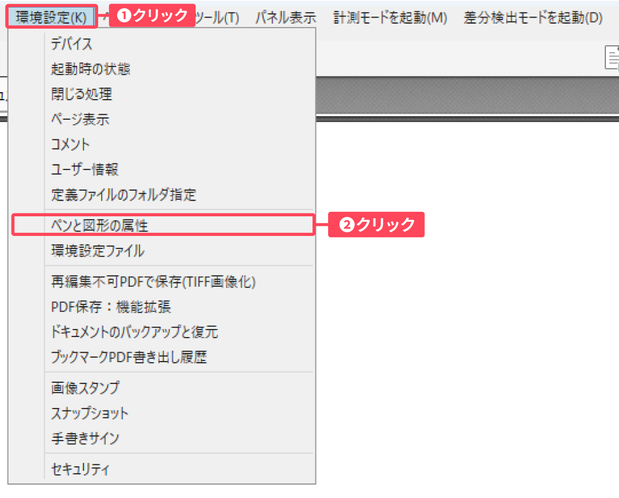 表示されたメニューから「ペンと図形の属性」をクリックします。