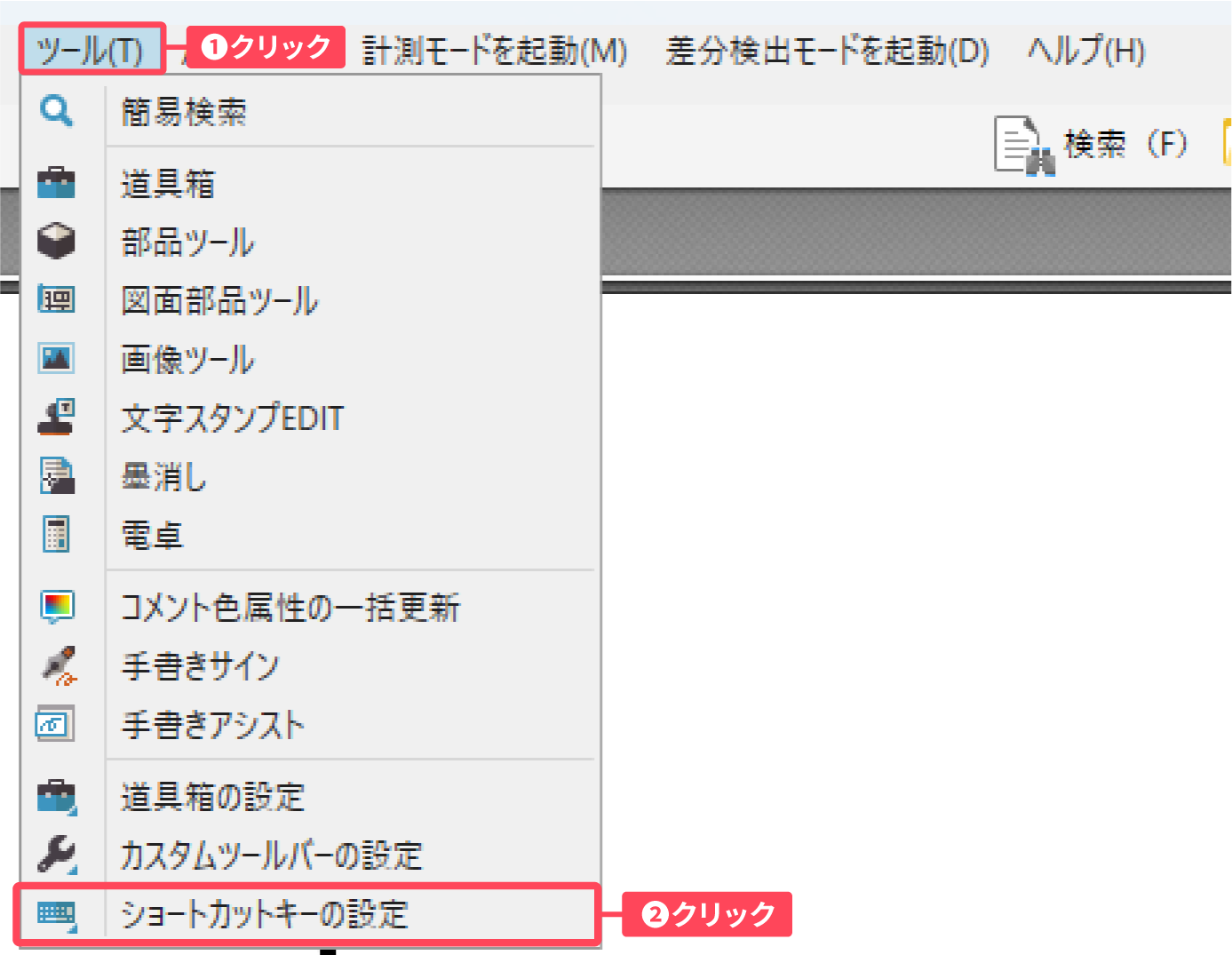 ❶「ツール」をクリックします。