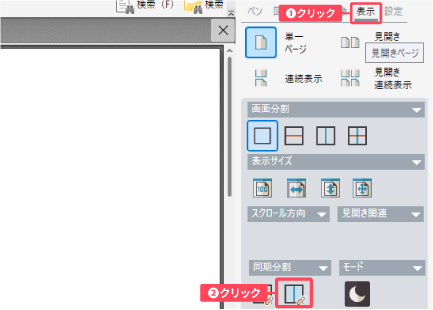 ドキュメント表示エリアが横に二分割され、同期した状態で操作出来ます。