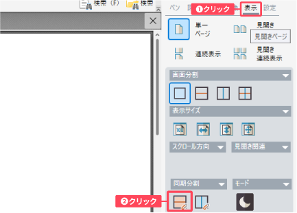 ❶「表示」タブをクリックします。