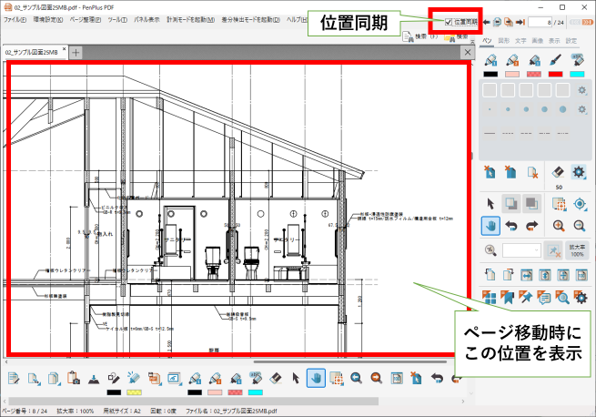 ♦PDFモード - 位置同期(ページ切り替え毎に左上の座標[0,0]に戻ることなく、同じ位置に表示することができます)