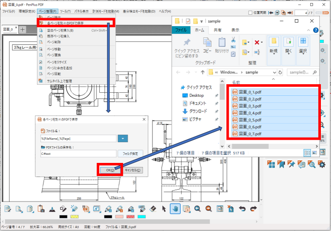 ♦PDFモード - 各ページを別々のPDFで保存(複数のページを個別ファイルとして保存ができます)