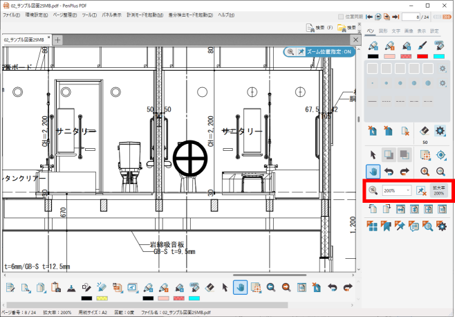 ♦PDFモード - ズーム位置指定(図面の指定した位置をクリックし、指定した拡大/縮小率で表示することができます)